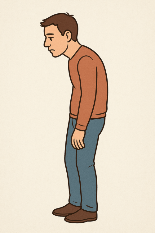 仕事でのパソコン業務、スマートフォンの長時間使用から、日ごろから姿勢の悪さを感じており、長時間の座り作業が続くと、首から背中にかけての凝り感、鈍痛が現れる。知人からも姿勢の悪さを指摘されるなど、不良姿勢の悪化を感じたため、来院された。