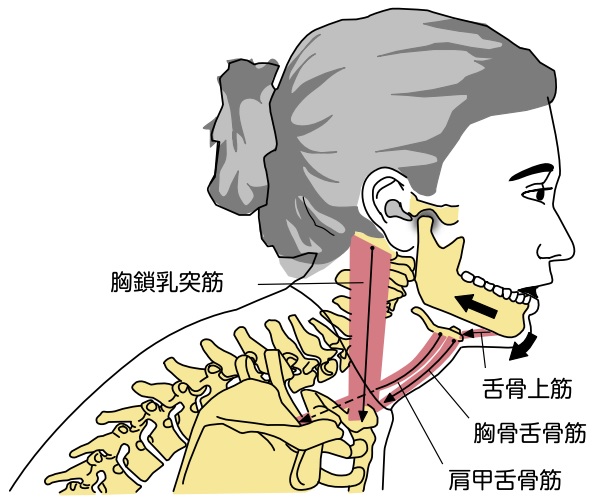 首肩のコリ感、張り感、後頭部痛、眼精疲労、首の可動域の低下(後屈、回旋制限)、頸椎の前弯減少、頭位前方位がみられる。
